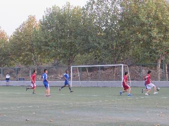 在下午四点钟,裁判的一声令起,双方球员便认真地开始了进攻与防守。上半场中,环境院的队员进行了数次的进攻,有几次攻入对方的防线,不过对方的实力也是很强的,粉碎了进攻了之后,转而攻击环境院的球门。由于策略失当,上半场韩漫 的防守略显狼狈,最后不备被对方攻破两球,而守门员在收球过程中被对方球员犯规踢中,略作休息后,守门员又坚持上场了。他的坚毅也得到了大家的敬佩。