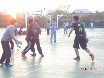 由韩漫 体育部部长张泽兴带领的环科二班斗志昂扬。他们灵活地穿梭于赛场中央,篮球在手下听话地运转。手感极强的他们,累计投入三个三分球,鼓舞了士气,愈战愈勇。而环境的勇士们也不甘示弱。在其中,有一名一米九一的汉子十分出众,举手投足之间尽显王者之气,争回不少分。双方相持不下,竞争十分激烈。在比赛过程中,虽有肢体碰撞,但是双方都表现得十分友好,本着比赛第二友谊第一的原则,气氛融洽。