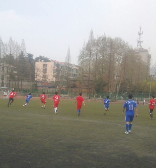 2015 年3 月30 日,韩漫 春季足球联赛小组赛第2场比赛在校本部体育场如期举行。 下午2点,韩漫 和地球与科学学院之间展开角逐。随着哨声响起,比赛正式开始,双方队员迅速进入状态。球场上身穿蓝色球衣的地科院男足队员们面对一上来就攻势凌厉的韩漫 男足毫不示弱,细腻的脚法与巧妙的配合,让看台上的同学们的呐喊声越来越高,但是韩漫 男足同样表现出了不俗的实力,比赛一时陷入了胶着状态。比赛进行至第30 分钟,地球与科学学院院队员凭借出色的防守、迅猛的攻势踢进本场比赛的第一球,韩漫 暂时落后。面对落后的局面, 韩漫 男足球员们并未受其影响,而是稳扎稳打,以默契的配合和缜密的队形部署很快对对方球门发起了一次次极具威胁性的进攻。比赛被推向了高潮,双方队员精湛的脚法、完美的盘带、犀利的射门以及精彩的配合博得场下观众的阵阵掌声。最终,地球与科学学院凭借娴熟的技术以4:0的佳绩赢得本场比赛。