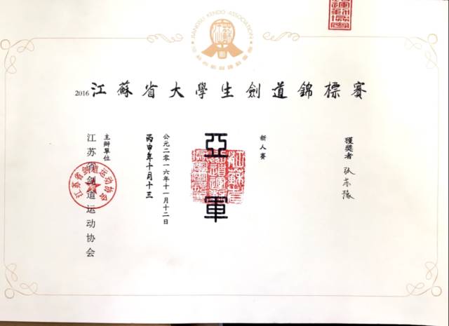 2016级的张苏豫同学曾获得江苏省剑道比赛第二的好成绩。