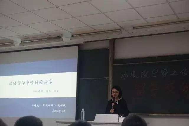 2017年4月6日下午4点,由环境院科协举办的留学交流会在致用101准时开始。此次交流会邀请到了李一平教授和两位13级的同学来为大家介绍有关出国留学的准备事宜及相关流程,并为大家解答有关出国留学方面的问题。