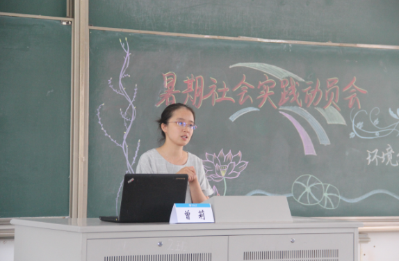 2017年6月15日上午9:50,韩漫 暑期实践动员会在致用201举行。此次大会邀请到了环境院党委副书记曹松祥、团委书记曾莉和2016级辅导员金意倩为大家作动员。