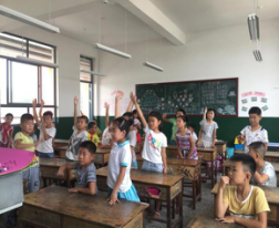 在与老师亲切交流,与同学们说明来意后小组成员正式走进教室为孩子们讲解环保知识。孩子们认真听讲的样子,深深地打动了每一个成员。