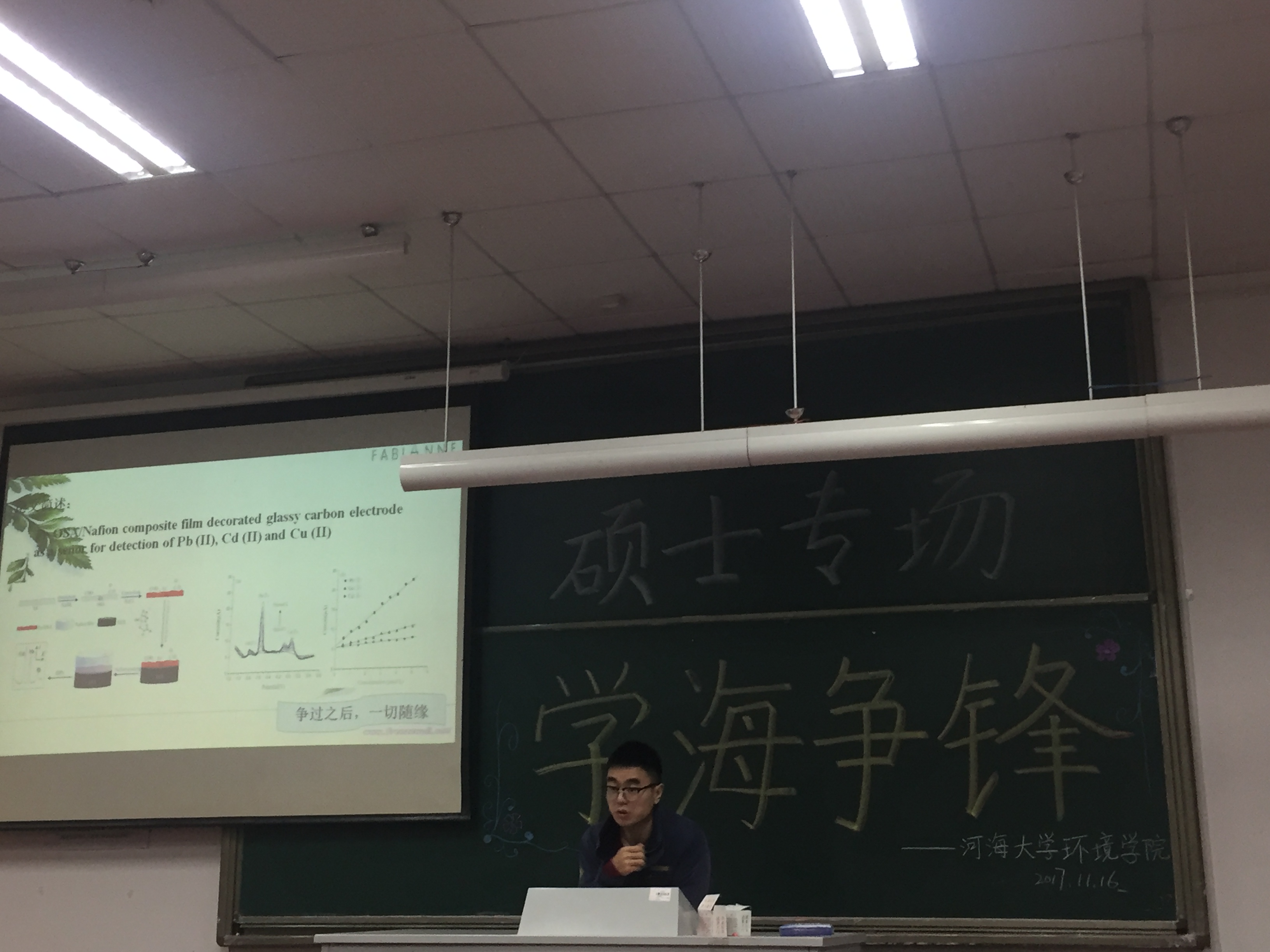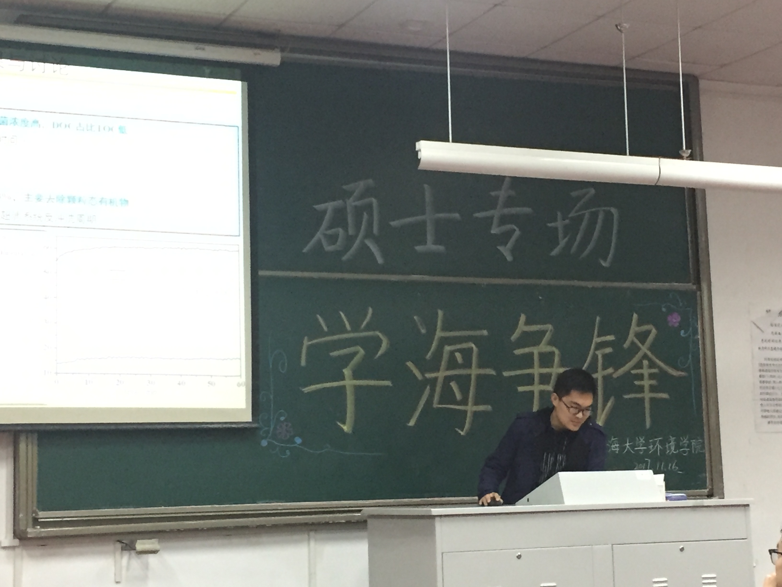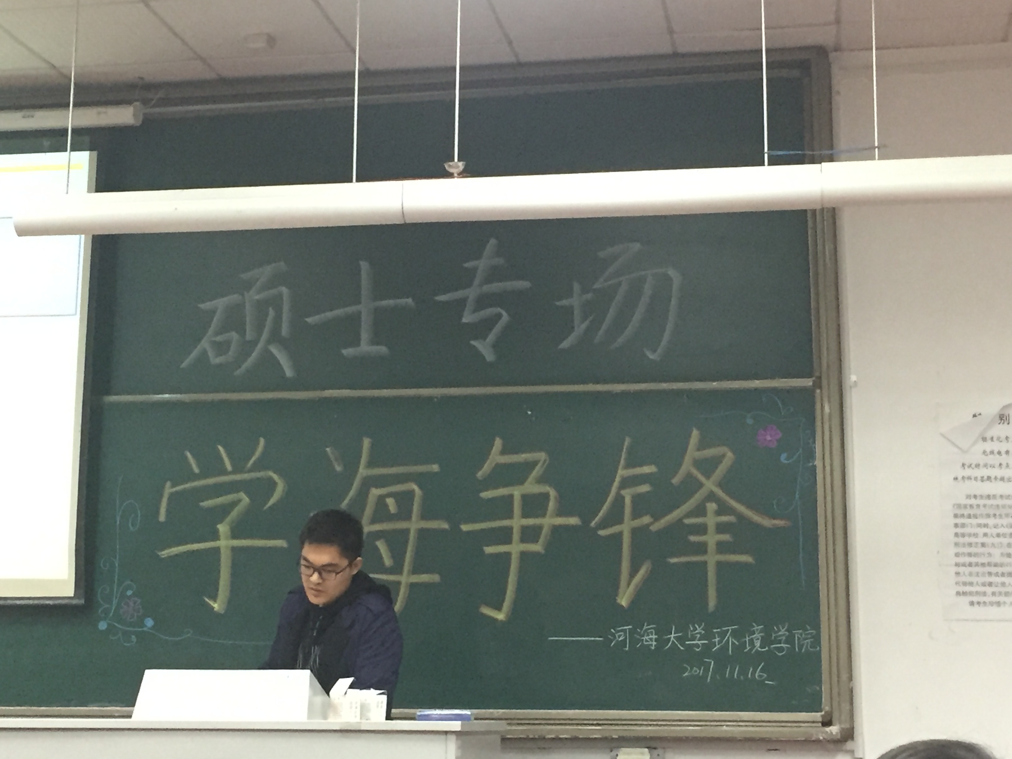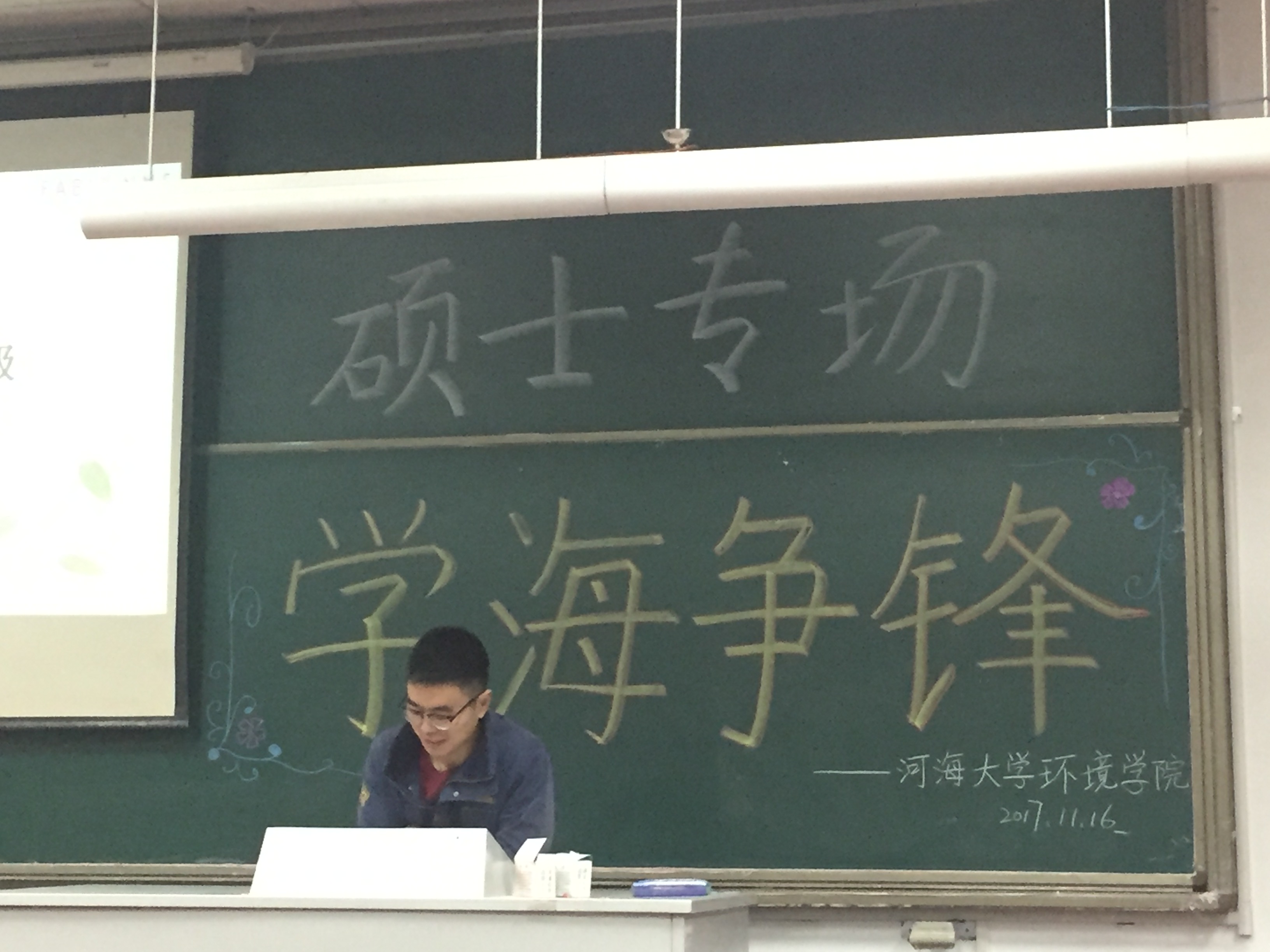 2017年11月16日下午,由韩漫 研会研科协策划并举办的“学海争锋——硕士专场”学术讲座于水利馆B101教室举行。本次讲座的三位主讲均是韩漫 优秀的研究生,都是今年国家奖学金的获得者,分别是16级市政工程专业的曹臻、15级市政工程的张佳男、15级环境科学与工程的沙海涛。