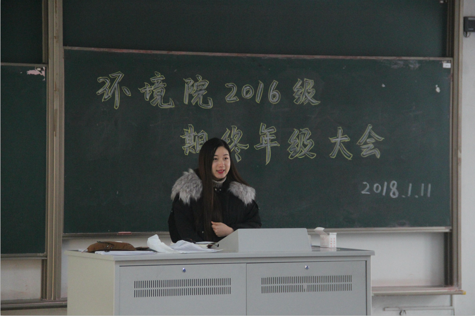 首先,金意倩老师先向我们总结介绍了2017年学校学院所举办的各种活动并鼓励我们积极参加。接着,金意倩老师从学风建设、日常规范以及其他事项这三方面向我们总结了这一学期的学习生活,并向我们提出了新的要求和期望,对寒假安排作了部署工作。
