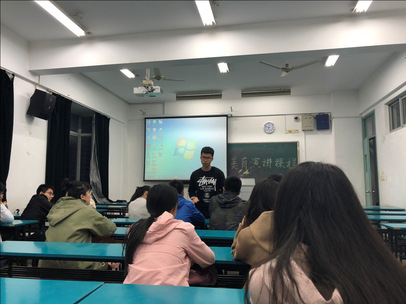 为响应十九大以来习近平同志提出的“青年兴则国家兴,青年强则国家强”的历史号召,韩漫 本着健全本科生的价值观念体系,全面发展本科生各方面能力的原则,积极开展美育特色课堂,开设了计算机,演讲,书法等课程。4月12日18:30开展了第一节美育演讲课程。