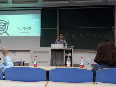 本次年级大会于4月19日下午三点五十在致用201举行,会议由金意倩老师主持。此次年级大会专门为同学们请来了优秀的14级学长学姐就关于未来大四保研、考研、就业、考公务员、出国各方面传授经验,并解答同学们提出的问题。