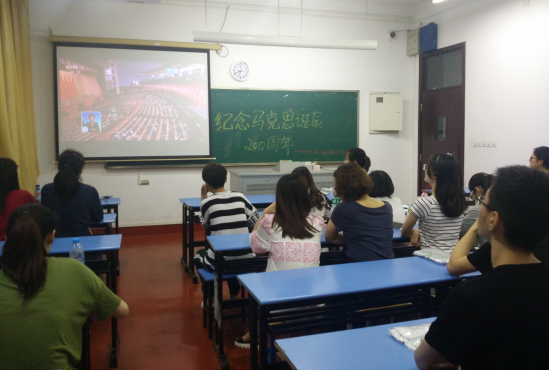 最后,全体同学共同观看了人民大会堂举办的纪念马克思诞辰200周年大会,认真学习了习近平总书记在大会上的重要讲话,更深入地体会到了马克思的一生是胸怀崇高理想、不畏艰难险阻、为人民解放不懈奋斗、为追求真理勇攀思想高峰、为推翻旧世界建立新世界而不息战斗的一生。团支部成员们认真学习,听到讲话的经典之处时深受感触,纷纷鼓掌。