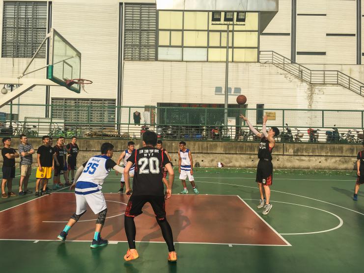 5月16日下午,韩漫 研究生篮球赛循环赛环境院与水电院的比赛拉开序幕。比赛一开始双方打得异常胶着:水电院率先取得领先,环境院在几次快攻失手后逐渐转为打阵地战,慢慢将比分反超。到半场结束,环境院领先4分。