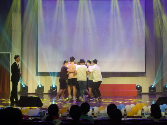 晚会的第二部分告一段落。为带动现场气氛,第二轮游戏互动环节开始。明显这次同学们的热情高涨,大家纷纷踊跃报名,登上舞台参与互动。在嬉笑中,我们的友情更进一步!