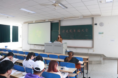 2018年6月21日下午4:00,韩漫 2016级年级大会于致用101教室进行,2016级辅导员老师金意倩主持本次年级会。