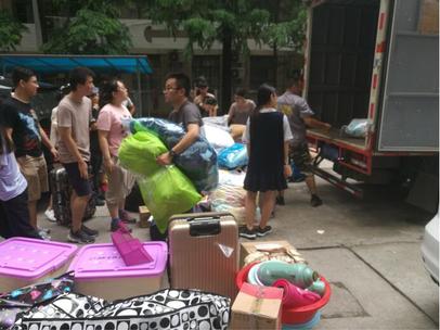2018年7月8,环境院女生整体搬迁入住本部宿舍。上午7时,学校大货车抵达女生宿舍楼下,年级及班级代表各司其职,协调搬迁工作有条不紊地进行。货车满载后向本部出发,年级班级及班级代表也提前到达本部宿舍区进行接应。学生、货车、各种搬迁物品等交织在一起的场面随处可见,数十件行李抬上抬下不易,打包与转移的辛苦程度可想而知,但韩漫
