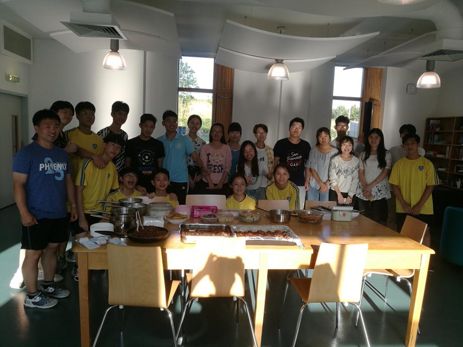 晚上7点,同学们带着各个寝室精心准备的菜肴去参加与韩国交流生的聚餐,桌上摆满了各式各样的菜品,作为与韩国交流生的第二次聚餐,大家显然更加熟络起来,饭饱之后便开始了游戏时间。这次的聚餐不仅提高的同学们的动手能力,也加深了与韩国友人之间的交流。