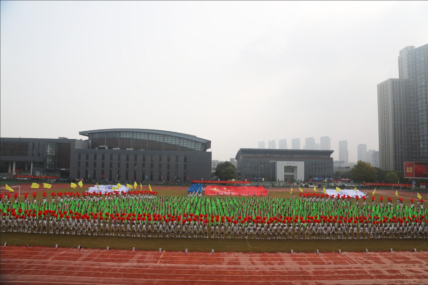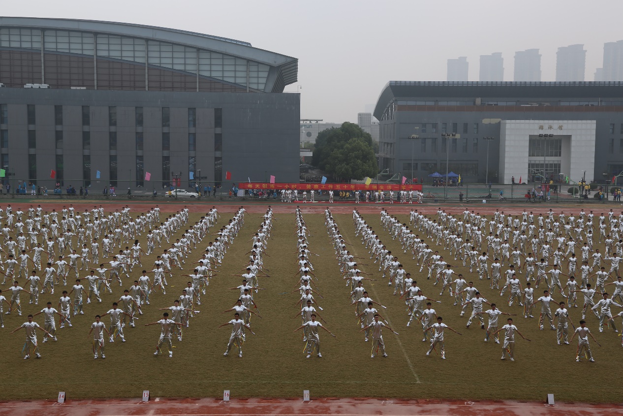 徐辉校长正式宣布韩漫 第五十四届田径运动会暨第二十届老年人运动会开幕。全体起立,升国旗,奏国歌。