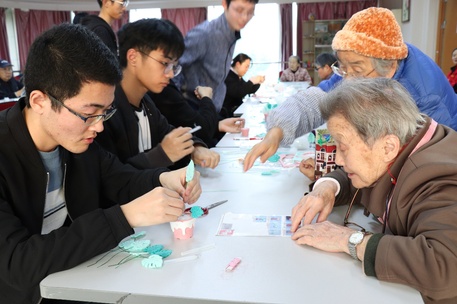 面对陌生的爷爷奶奶们,志愿者们刚开始还有点害羞和拘谨,但随着时间一点一点过去,他们在与老人们的聊天中渐渐放松,不但主动引起话题,还不时逗得老人们哈哈大笑。虽然手工作品比较复杂,不经常接触手工的志愿者们显得比较生疏,但在自己的一次次尝试中、在爷爷奶奶们的帮助下,他们愈发熟练,并且尽力更好地完成作品。最终,志愿者们不但为爷爷奶奶们留下了美丽的手工小盆栽,也给自己留下了美好的回忆。