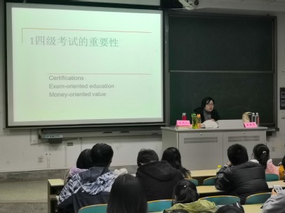 法学院的黄雅屏副教授担任讲师,向同学们讲解四级考试的相关要点。