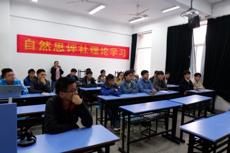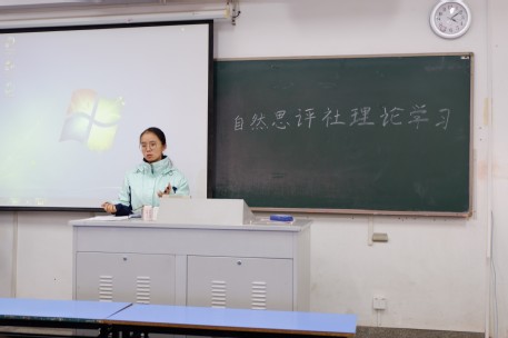 为充分提高大学生对于思想政治理论的兴趣,2018年11月30日下午15:50于致用304开展了自然思评社理论学习,本次课程的主讲老师为韩漫