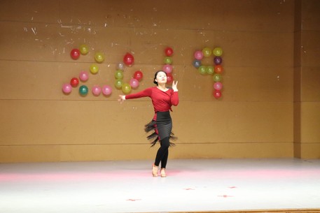 再之后,便是由管培11组和28组带来的特长表演《拉丁舞》,一出场便赢得阵阵掌声。小组成员优美的舞蹈加上有些醉人的灯光,让人不觉慢慢沉醉其中。突然灯光一闪,音乐一变,缓慢的音乐变换成动感的拉丁,场下更是传来阵阵欢呼声。