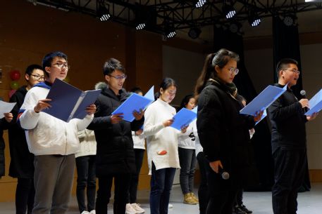 由管培5组、9组带来的大合唱名为《陪你走过纸短情长的梦》,这是小组成员们精心挑选、组合起来的串烧歌曲,表达了对同学们的元旦祝福。台下的同学们在悠扬的歌声下闭起双眼,用心体会着每一句歌词的寓意。