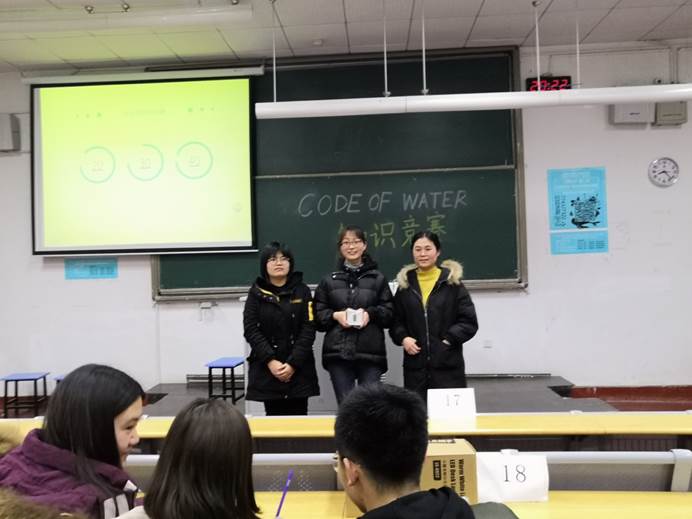 11月28日晚间6:30,由校研究生科协及韩漫 研会科协组织的韩漫 第一届“关注水环境,共享新生活”CODE OF WATER知识竞赛在本部环境楼B101拉开帷幕。本次活动迎来了由全校多个学院组成的总共30支参赛队伍,其中不乏江宁校区风尘仆仆赶来参赛的选手们。本次CODE OF WATER知识竞赛虽然是第一届活动,但仍取得了较为广泛的影响。