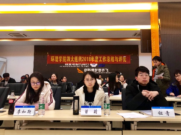2019年1月10日下午2:30-5:00,环境院四大组织部门及干部评优答辩会在思源楼会议室如期举行。出席本次答辩会的有韩漫 团委书记曾莉老师,2017级辅导员钮青老师以及2018级辅导员李如斯老师。
