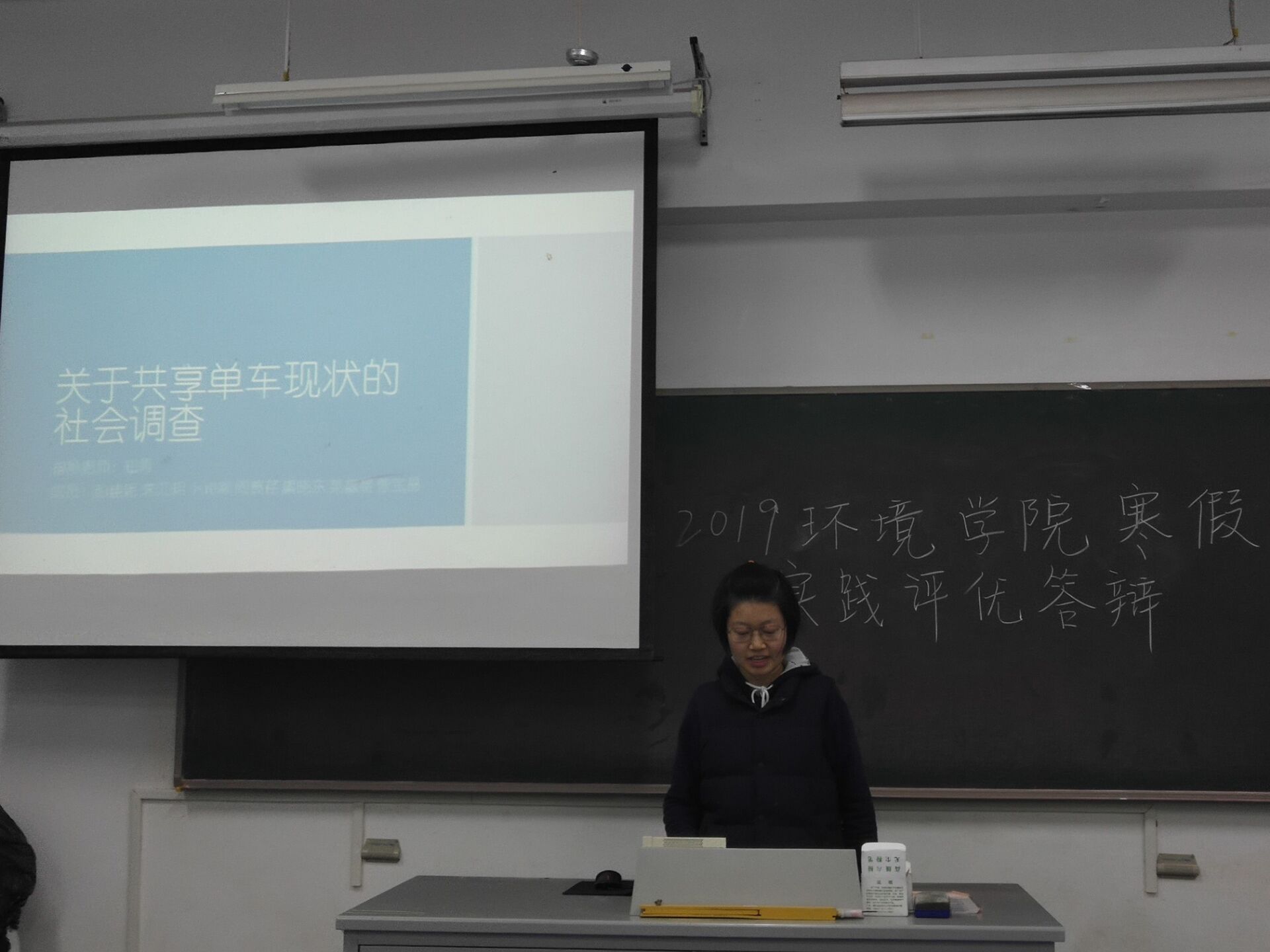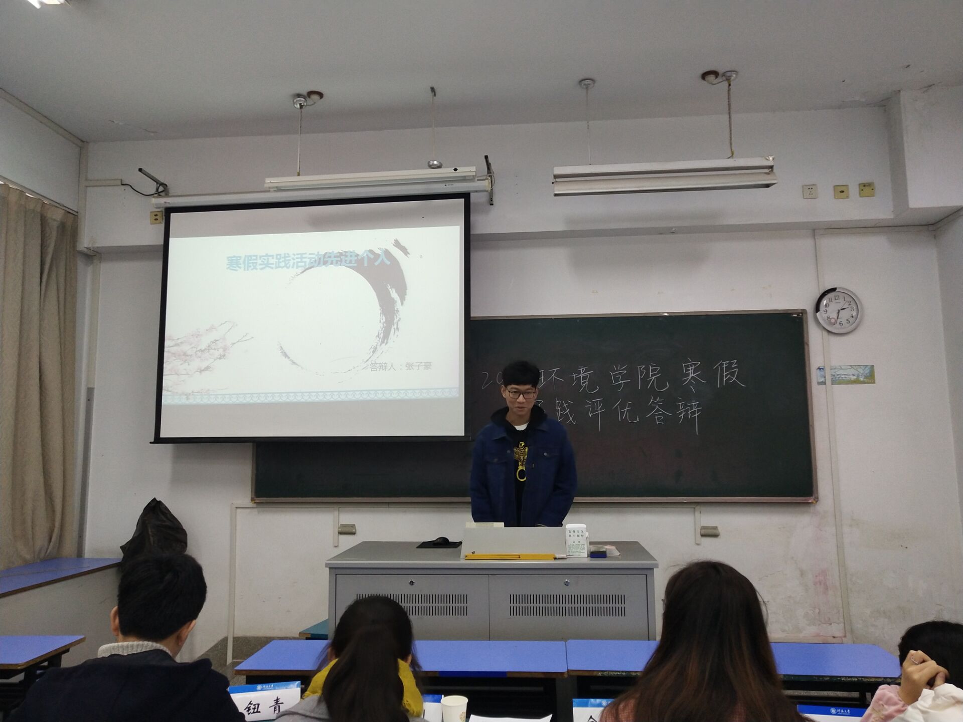 下午两点整,答辩会正式开始。参与本次答辩的同学们在寒假中分别围绕河长制、感念师恩、专业实习、社会活动等主题展开了实践。