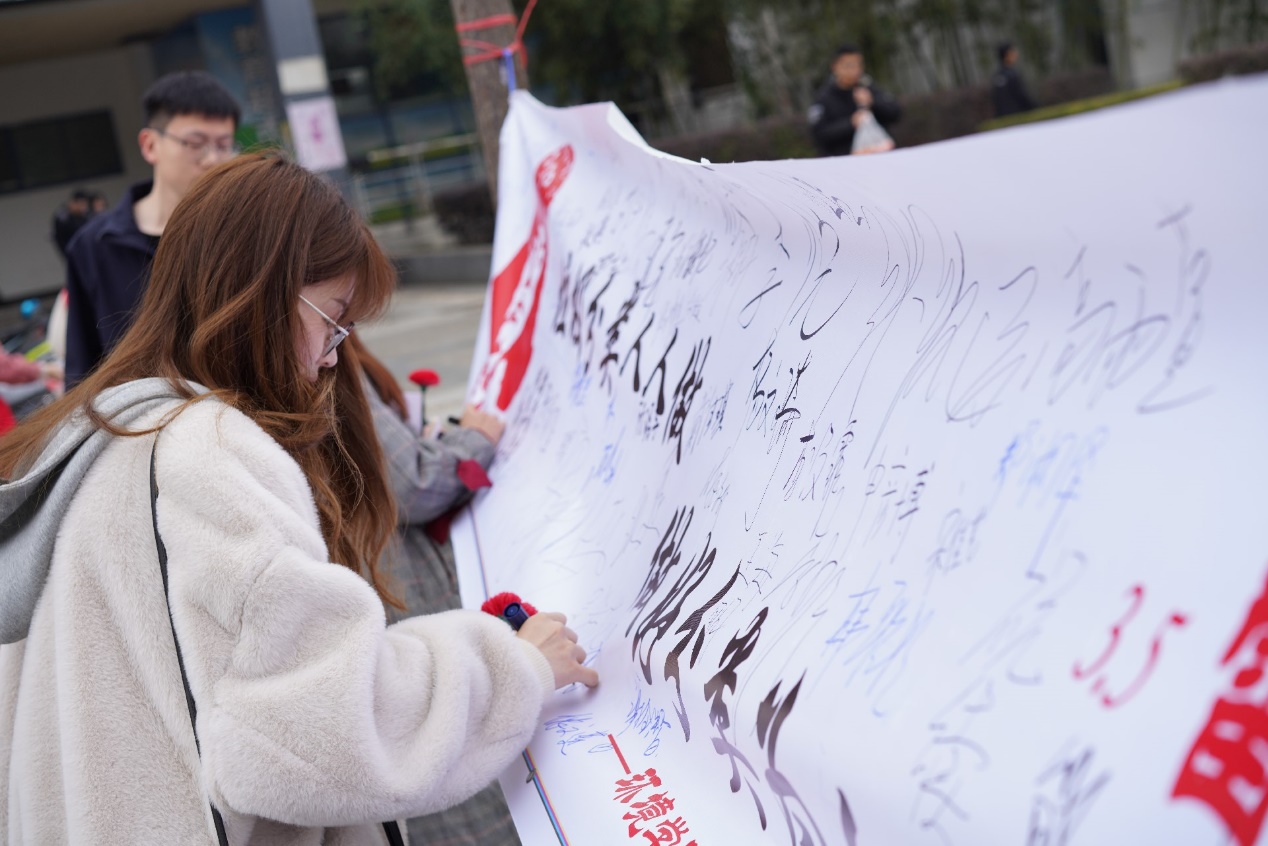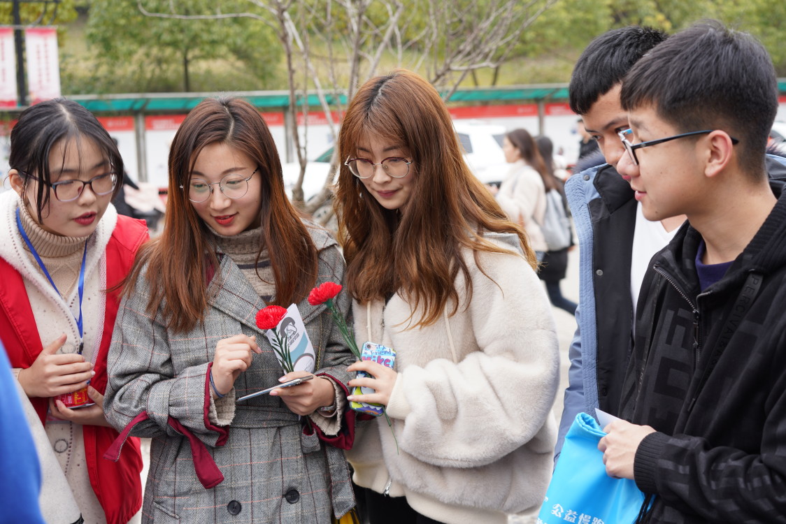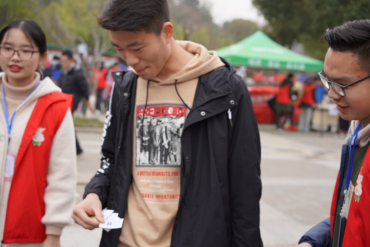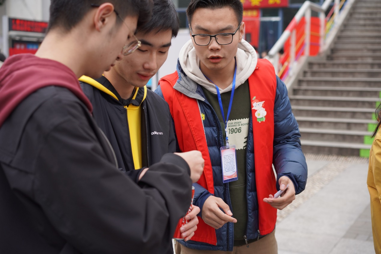 11点前,各个学院的志愿者们已到达现场,并在各自负责人的指挥下拉起了横幅,摆好了桌椅,也张贴出了各个学院所准备的相关活动的海报。11点30分,活动准时开始。
