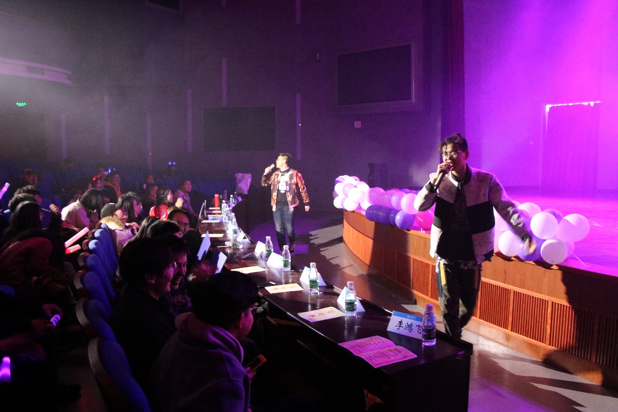 期间还有抢凳子、猜歌名此类普通又容易激起听众热情的游戏,现场气氛活跃,极大地调动了观众的积极性。还有三名水文院导师分别献唱《悟空》、《公路之歌》、《画心》三曲,他们展现出扎实的歌唱功底和强悍的实力,带着大家的心在跳跃的音符间蹦跳。