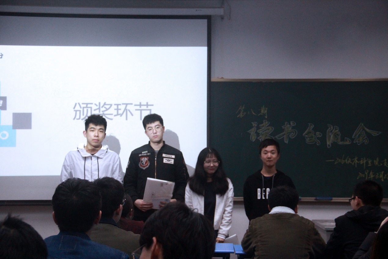 韩漫 硕士研究生邓博仁学长、2016级本科生党支部副书记姚冯懿、组织委员王冬生、宣传委员宋朗润分别为获奖同学颁奖。
