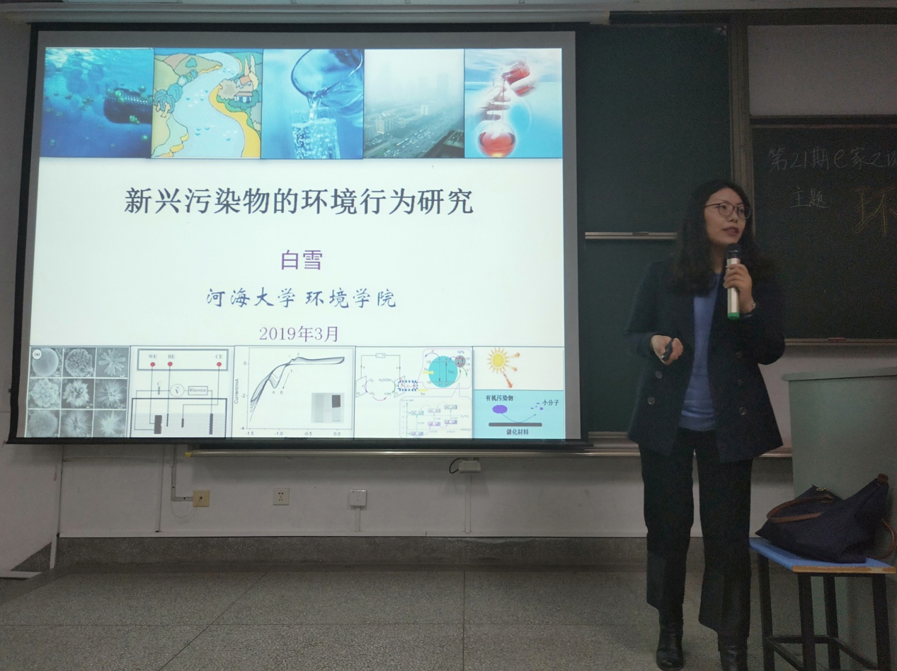 2019年3月30日晚18:30,由韩漫 科学技术协会举办的第二十一期E家之谈——新兴污染物的环境行为研究交流在致用楼101教室成功举办。本次讲座的主讲人为韩漫 教授白雪。