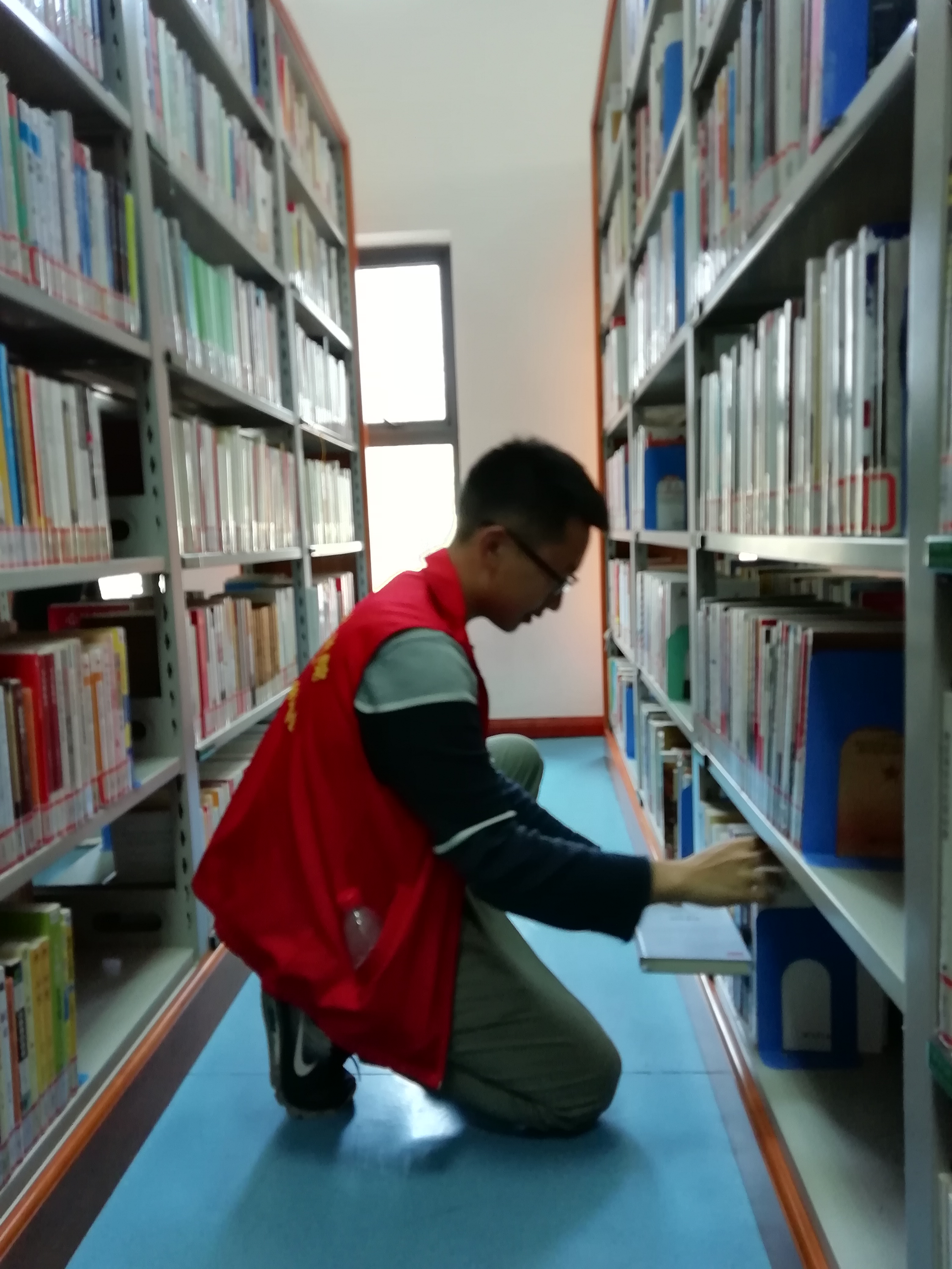 抵达目的地并进行一二楼的分组后,志愿者们马上投入到志愿服务中去。但有同学由于使第一次参加活动所以不了解图书馆布局,工作人员便带领他们先行逛了一圈熟悉编号,然后亲自做了示范,之后志愿者们便开始投入了工作,虽然期间遇见一些疑惑,但在工作人员的帮忙下还是很快调整了过来。在过程中,会有空余的时间,于是志愿者们还可以翻看几本书籍度过时间。身穿红色马甲的身影在一排排图书架之间穿梭着。尽管总是有不了解图书摆放的读者将图书放错,但志愿者总是不厌其烦地将放错的图书一本本抽出并将其重新归为,摆放整齐;尽管归还的图书堆积了一本有一本,但他们依旧耐心地书柜之间来回奔走,将图书归位。志愿者们的图书整理活动,不仅使读者借阅图书更方便快捷,还分担了图书管理员的工作压力。通过这次志愿活动,志愿者们收获了实践经验,更重要的是他们用他们的行为给社会增添了一份温暖,向社会传递出暖心的正能量。