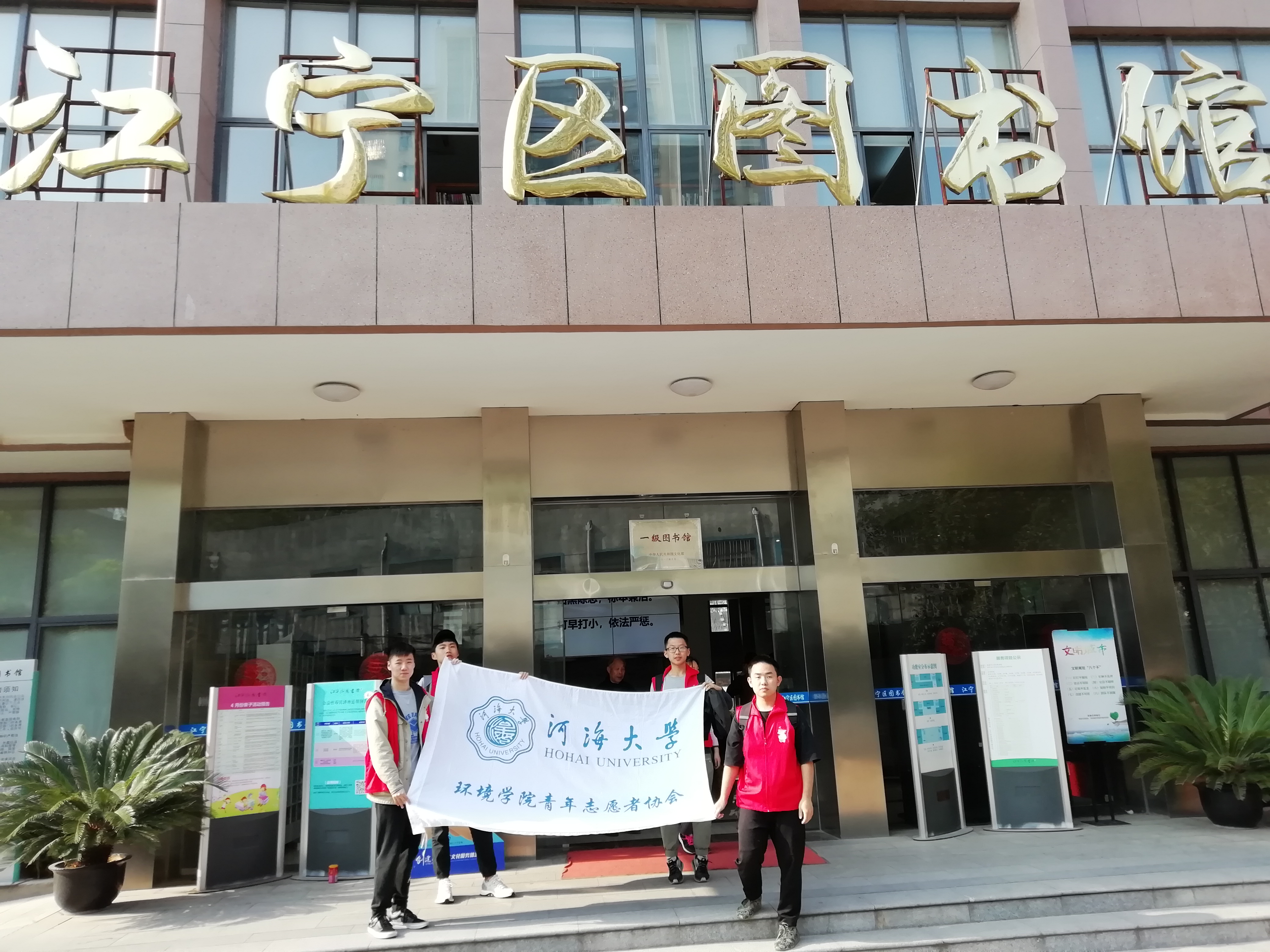 2019年4月13日星期六,第一抹阳光早已洒于河海的土地上,本学期的又一次图书馆志愿活动也开始了。活动分上下午,上午,兴致勃勃的3名志愿者跟随青协干事陈奕帆同学于九点抵达江宁图书馆。下午则在邓永恒同学的带领下去到图书馆。