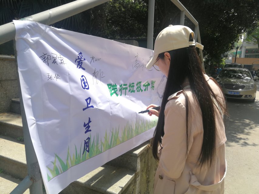 (图7 同学在“践行垃圾分类”横幅上签名)