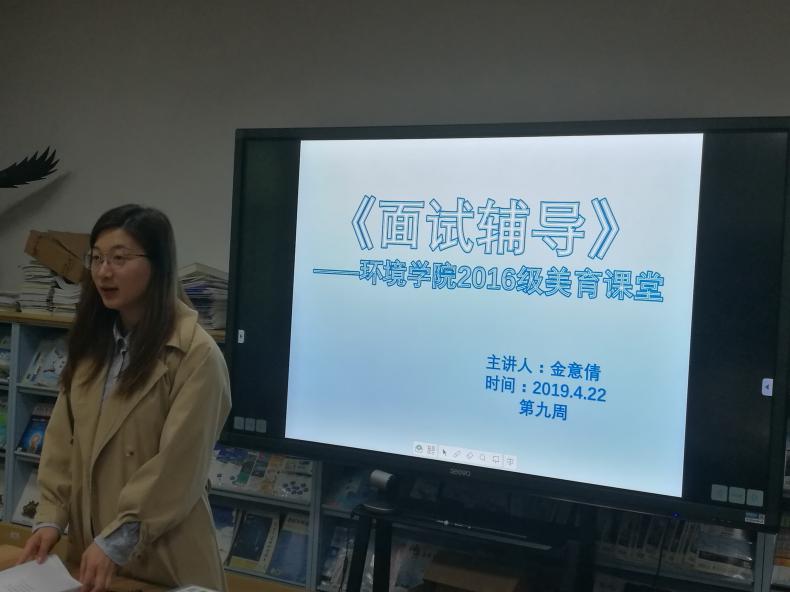 4月22日下午四点,美育课堂面试辅导班开启了第一次课程,主讲老师是韩漫 16级辅导员金意倩老师。