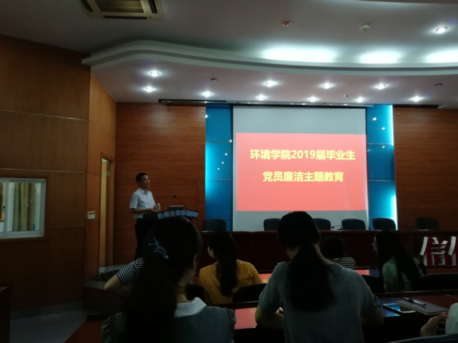 2019年6月12日下午,韩漫 全体毕业生党员齐聚水利馆301开展毕业生党员廉洁主题教育活动,学院党委笪学军书记为同学们做汇报。2015级本科生辅导员王剑老师、研究生辅导员高臣老师主持。活动中,笪书记分别从三个方面对每一位毕业生党员提出了中肯的建议并分享了自己宝贵的经验,并在最后真诚地祝福各位同学前程似锦,一切顺利。