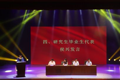 的硕士毕业生和本科毕业生们共同策划。典礼开始之前,播放着由各位老师以及学生家长为大家带来的毕业祝福视频。