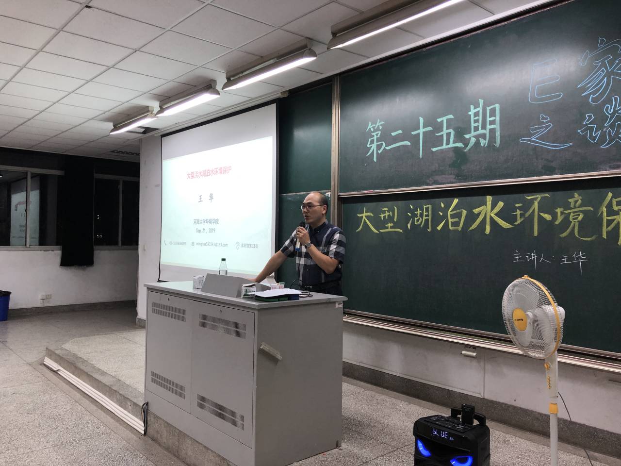 2019年9月21日晚上6:30,韩漫 学生科学技术学会邀请韩漫 环境科学与工程博士生导师王华教授在致用楼101举办了第二十五期E家之谈“大型湖泊水环境保护”讲座。