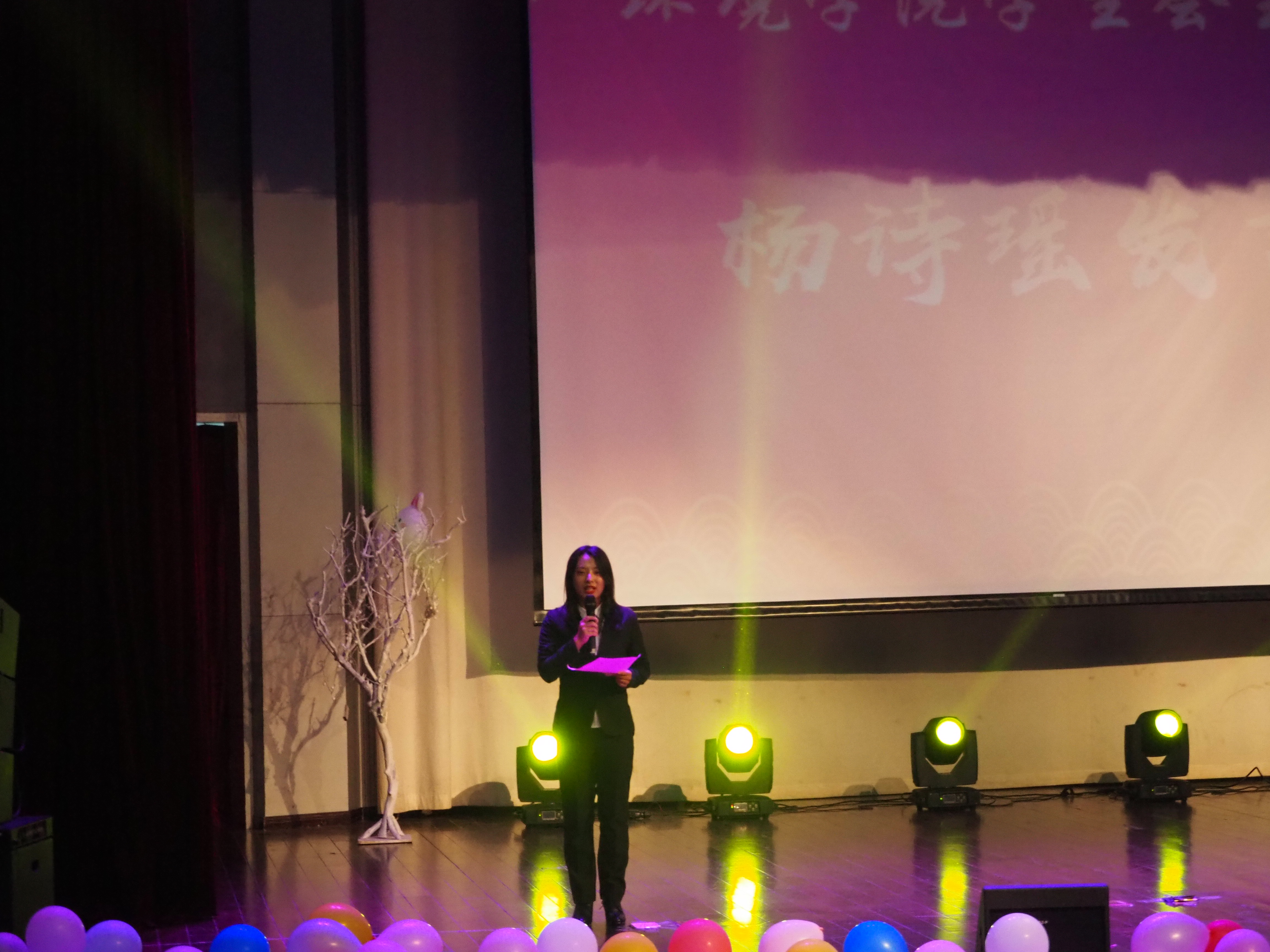 在曼妙的歌声中,我们结束了晚会的第二篇章。接下来,就是激动人心的抽奖环节,气氛在这一刻达到了本场的高潮。在全场同学的呐喊声中,扈雅璐老师和程萌老师抽中了四位幸运儿都收到了非常精美的礼品。