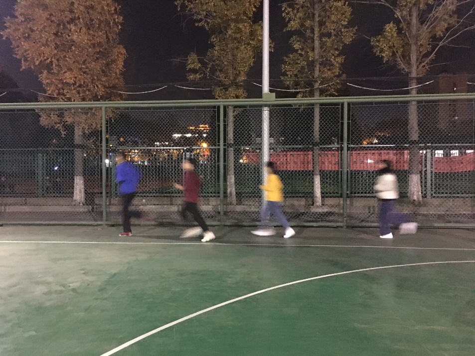 在正式上课之前,学员们进行了热身活动,绕篮球场地慢跑四圈。