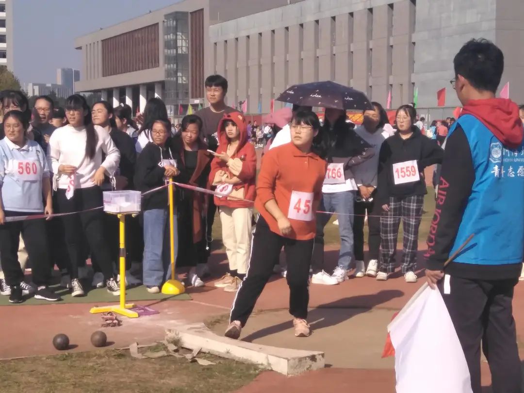 男子铅球决赛中,环境院运动员窦溱瑀同学、万凯琦同学、徐启晨同学为韩漫 争光。伴着高挥的臂膀,铅球从手中划出圆滑的曲线,在草地上砸出了扎实的坑洼。其中窦溱瑀同学凭借高超的投掷本领荣获了第三名的好成绩。