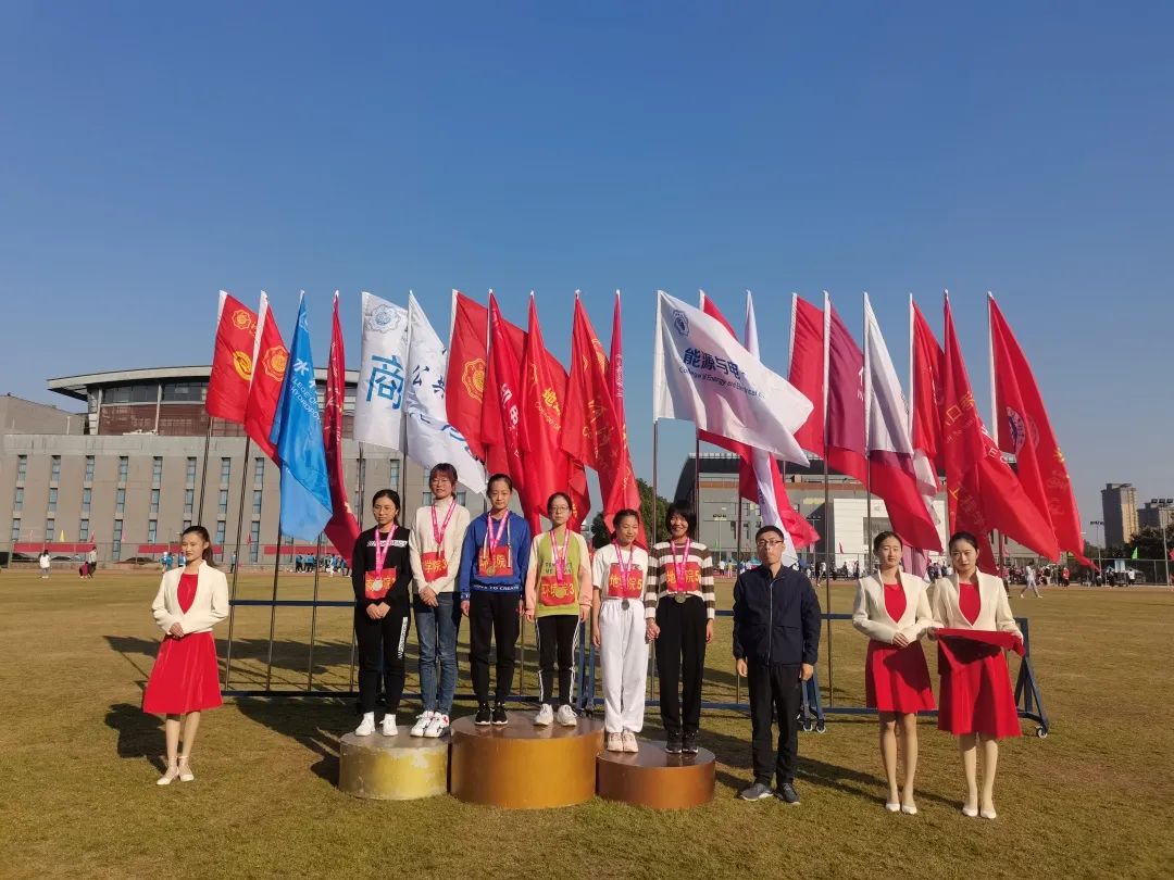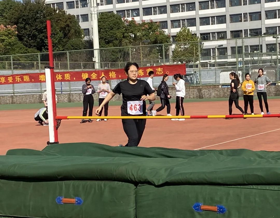 于此同时,在另一个场地中进行的女子跳远比赛中,詹玥同学、龚怡宁同学、韩清云同学也不甘示弱。她们身轻如燕,纵深一跃,便在天空中留下一道美丽的弧线。最终,詹玥同学和韩清云同学分别获得了全校第三和全校第五的好成绩。