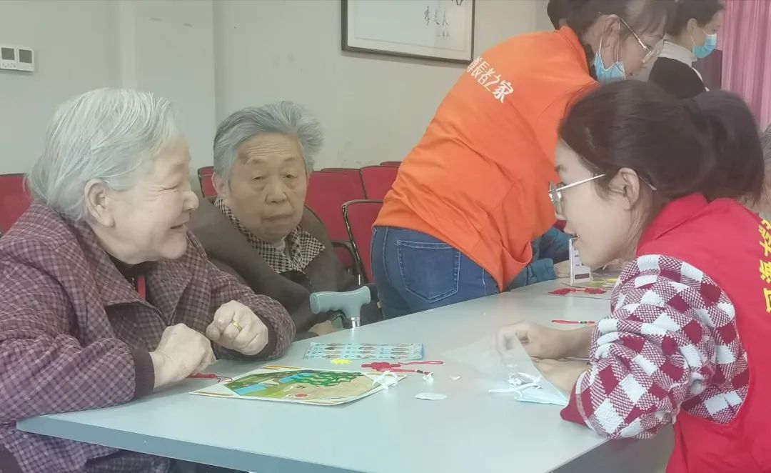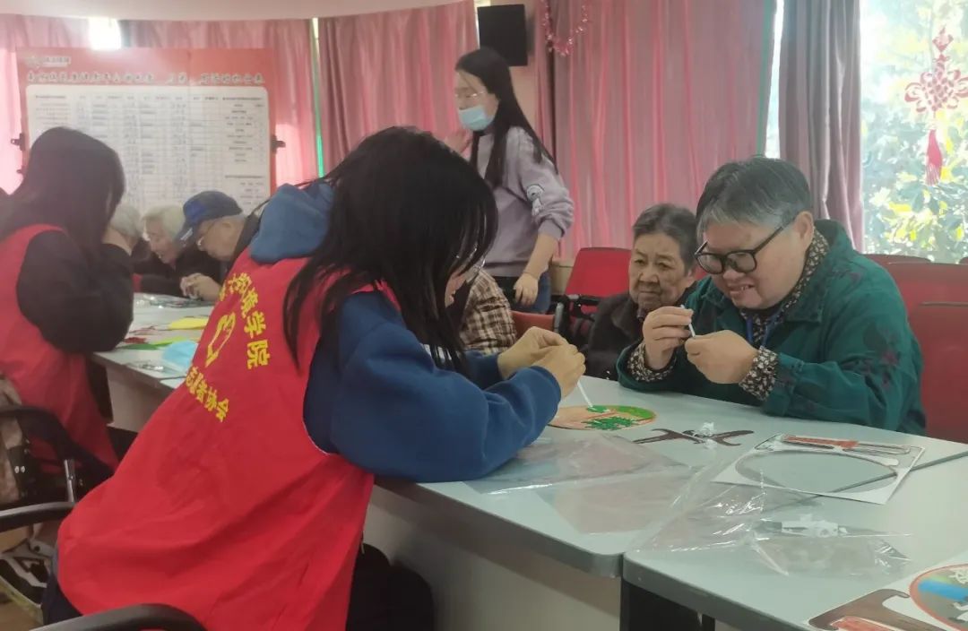 为了更好的服务敬老院的老人,志愿者们带来了各种各样的手工材料。在把桌椅和手工材料准备完毕后,伴随着欢快的音乐,志愿者们开始和老人们一起创作手工艺作品。面对不熟悉的老人们,志愿者首先引出话题,在倾心的交谈中慢慢与老人熟络起来。他们用耐心和热情感染着老人们,让老人们的脸上长伴笑容。虽然老人们的白发和皮肤上布满了岁月的痕迹,但她们的双手依旧灵巧。在与志愿者们闲话家常的同时,她们的双手也配合着志愿者的动作,将看似杂乱无章的纸片幻化成一件件美观的手工艺作品。在与老人们制作手工的过程中,志愿者们也准备了小节目,精彩的表演让老人们拍案叫绝,现场一度充满着欢声笑语。