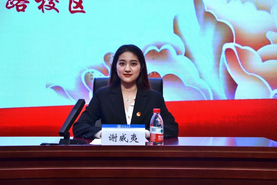 首先,校院学生会负责人谢威夷致辞。她先代表了韩漫 学生会向大会的召开表示热烈祝贺,对韩漫 学生会过去的工作进行了肯定。紧接着,对同学们提出几点建议:第一,希望同学们满怀理想,坚定信念;第二,希望同学们努力锤炼学习能力、竞争能力和自主创新创业能力;第三,高标准严要求,做好学生服务工作。最后,希望韩漫 学生会能真正成为广大同学身边的可信赖的学生会。