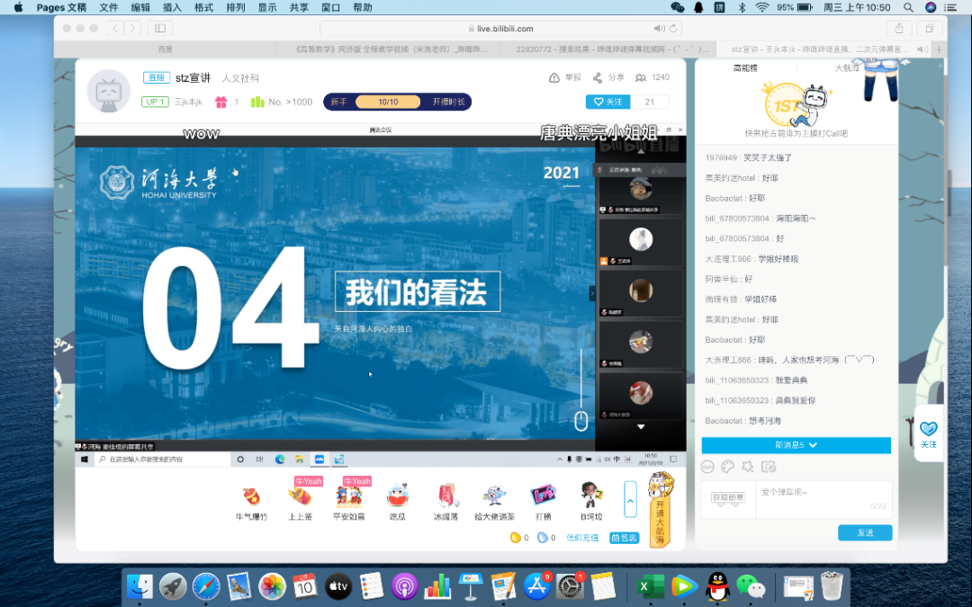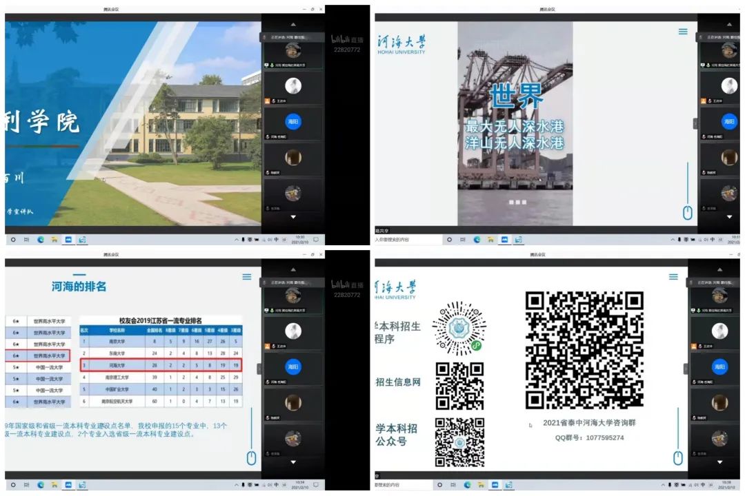 宣讲队伍由六人组成,跨越四个院系,有来自韩漫 的窦佳瑶、李泽胤、李业丰,来自商学院的季婧妍,来自计信院的岳海阳,来自港航院的唐典。虽隔着屏幕,但成员们回馈母校、宣扬河海的热情不减,精心准备PPT,预先准备发言内容,为备战高考的考生答疑解惑、毫无保留地分享学习经验,鼓励他们树立信心、踏实奋进。