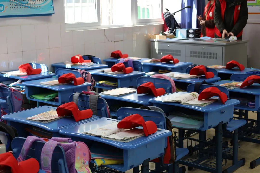 升旗仪式结束,志愿者们分为两组,到两个班级中开展用水思源、节水源远的主题班会。