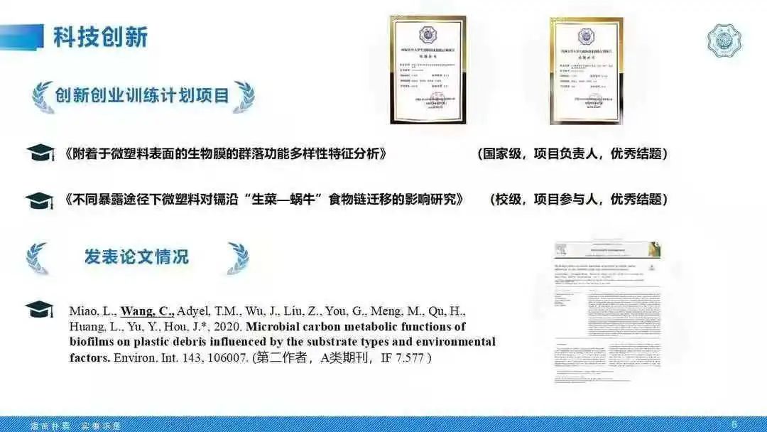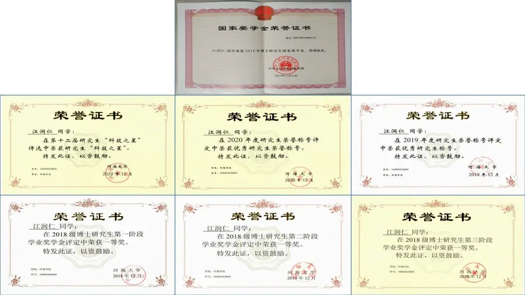 他用笃学筑为学之本,在实践中明知行合一。读博期间以第一作者身份发表A类期刊SCI论文8篇,总影响因子达59.327,其中3篇论文入选“ESI高被引论文”,1篇论文入选“ESI热点论文”。申请国家发明专利9项,其中已授权国家发明专利3项。他学业优秀,连续三年获得韩漫 一等学业奖学金,2019年博士研究生国家奖学金。荣获韩漫 “2020年度优秀研究生”;韩漫 第十二届研究生“科技之星”;韩漫 “2019年度优秀研究生”等荣誉称号。他勇于承担,求真务实,博士期间主持了江苏省研究生科研与实践创新计划项目、韩漫 优秀博士生培育计划、韩漫 优秀博士培育计划。