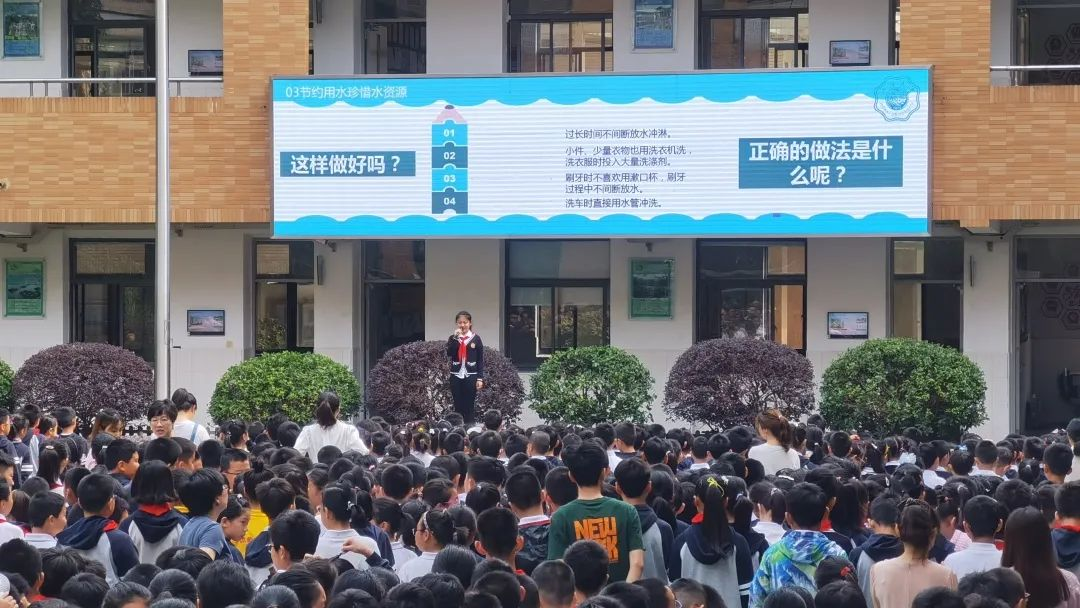 宣讲的最后主持人强调了节约用水的重要意义,指出了水资源利用中存在浪费现象严重,水体污染严重,水质生态恶化和节水意识不高等问题。主持人还列举了错误的用水方法,通过对比的方式突出了生活中节水技巧的重要性并向小朋友们简要介绍了世界水日与中国水周。