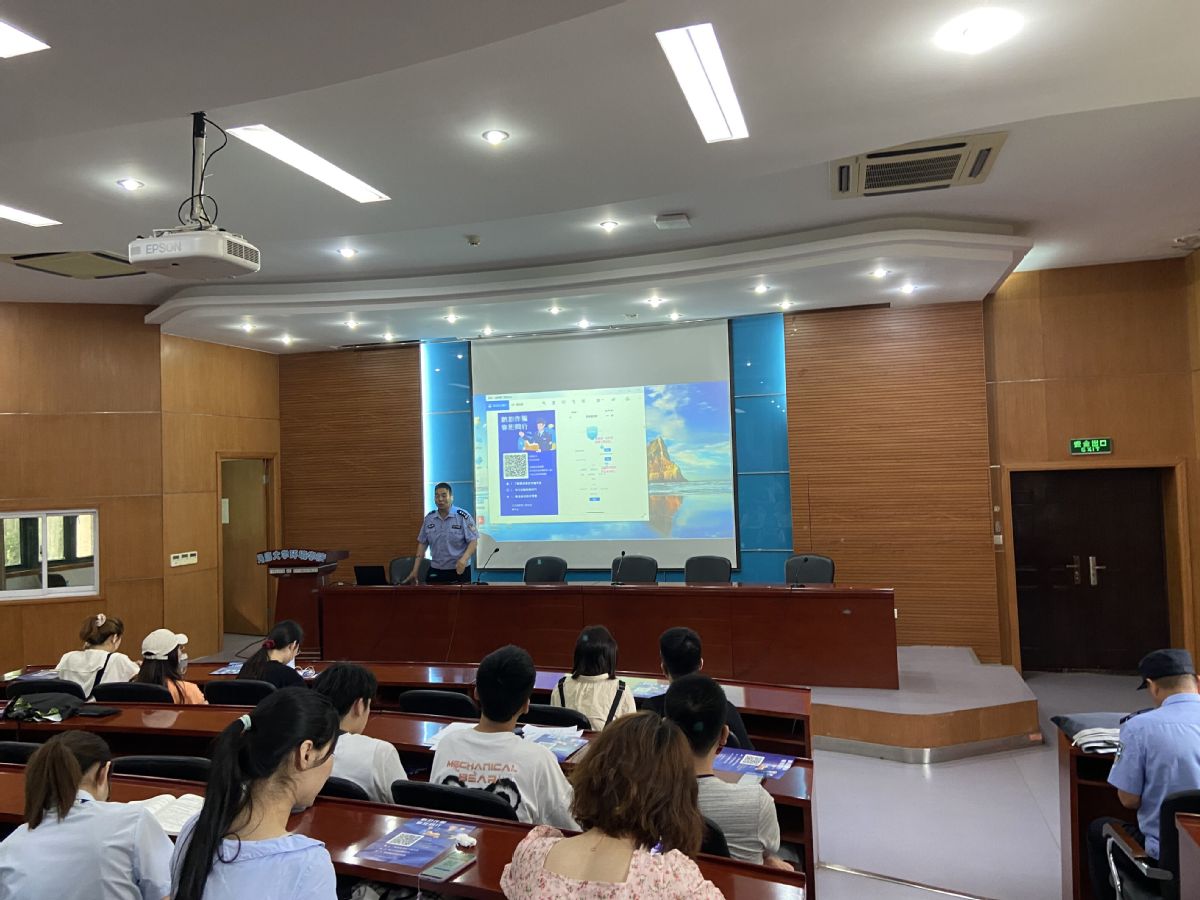 2021年6月8日,针对近期校园内泛滥成灾的诈骗案件,为提高同学们对诈骗的防范与识别能力,筑起防诈骗的金钟罩,韩漫 邀请了宁海路派出所管区张志辉、曹守义等民警,面向学院同学们开展了“防诈骗,护平安”知识讲座。