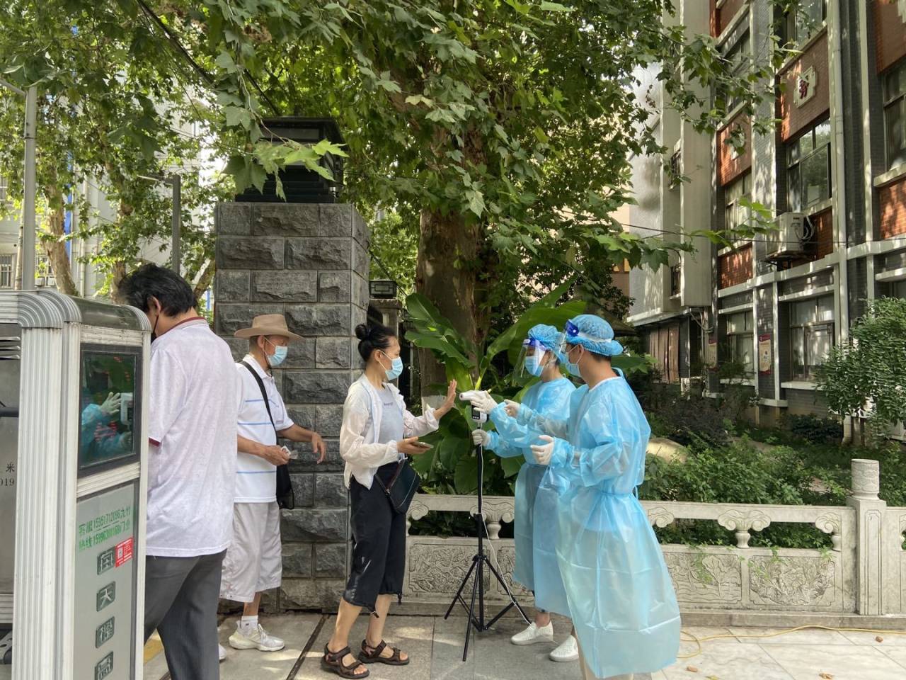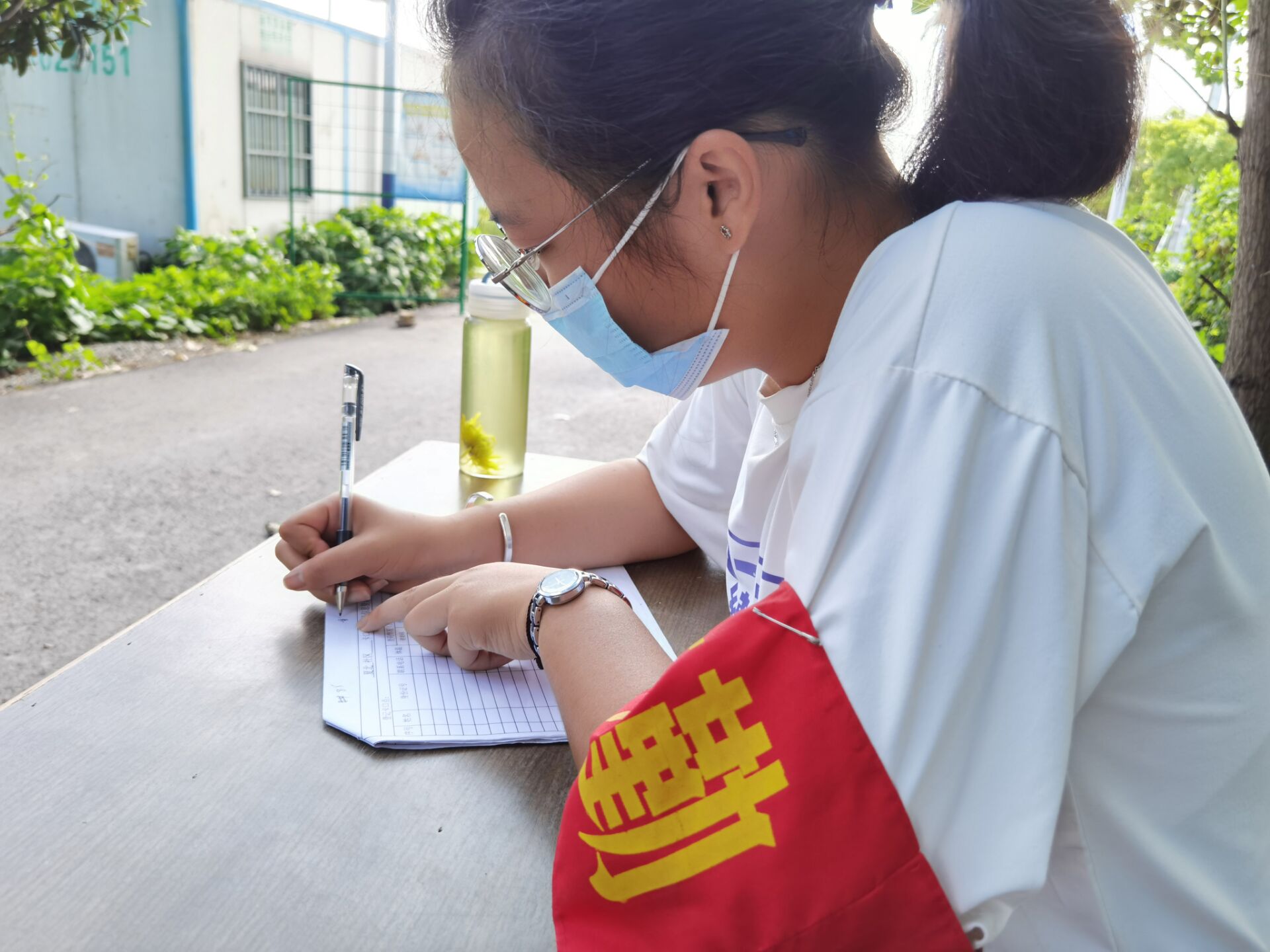 2020级本科生张雨桐、黄少刚、钱悦琦等同学积极响应当地共青团号召,作为志愿者加入所居住社区的疫情防控工作中,负责在街道检查进出人员健康码并测量体温等工作任务。