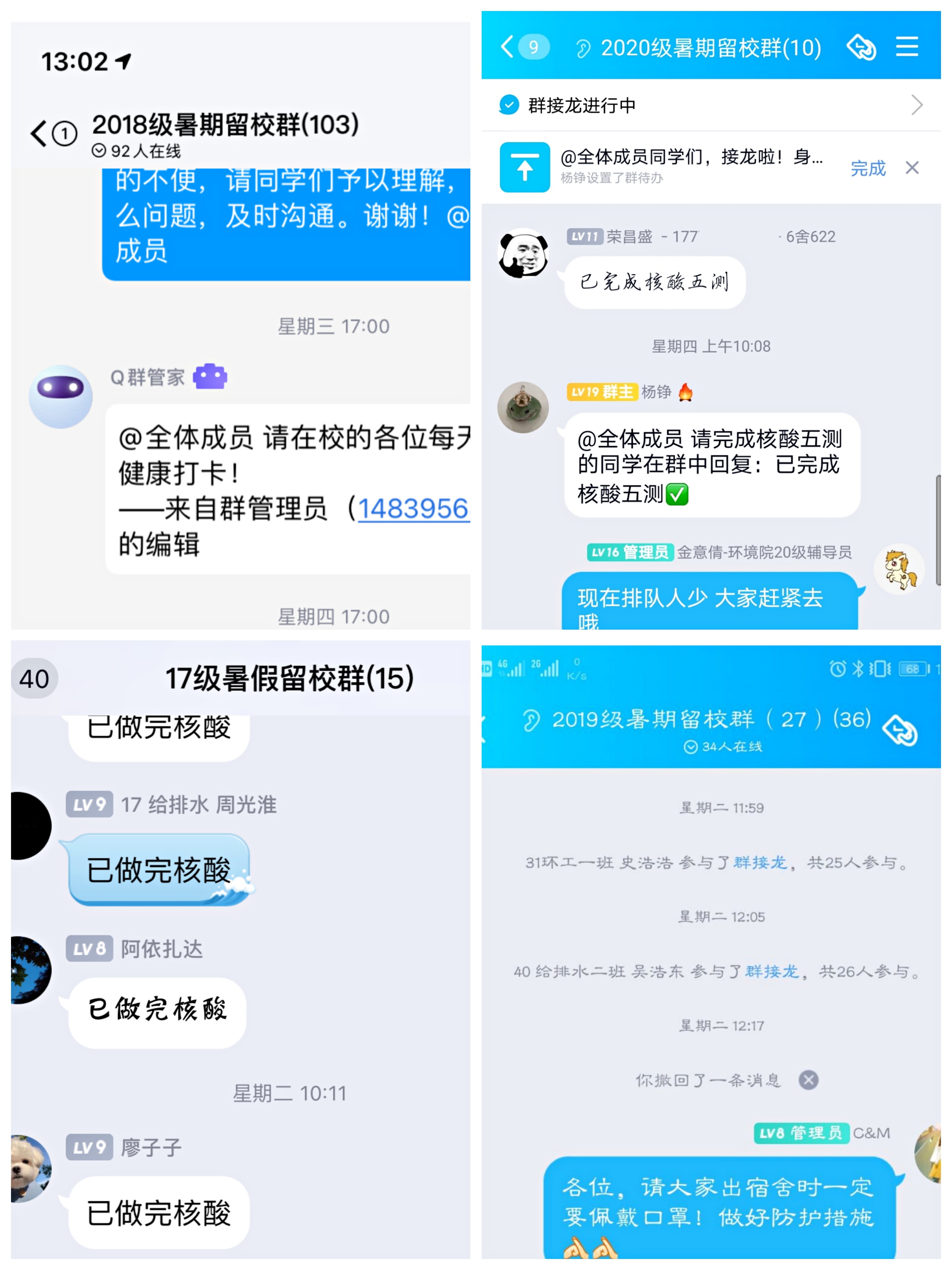 八名同学主动报名加入送餐的志愿服务中。同日,在西康路校区进行的第四轮核酸检测中,有二十名韩漫
